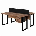 Estação de Trabalho 1,50×1,35m 02 Lugares c/ Gavetas c/ ponto de tomada PÉ QUADRO – Cor Nogal Sevilha – 63099