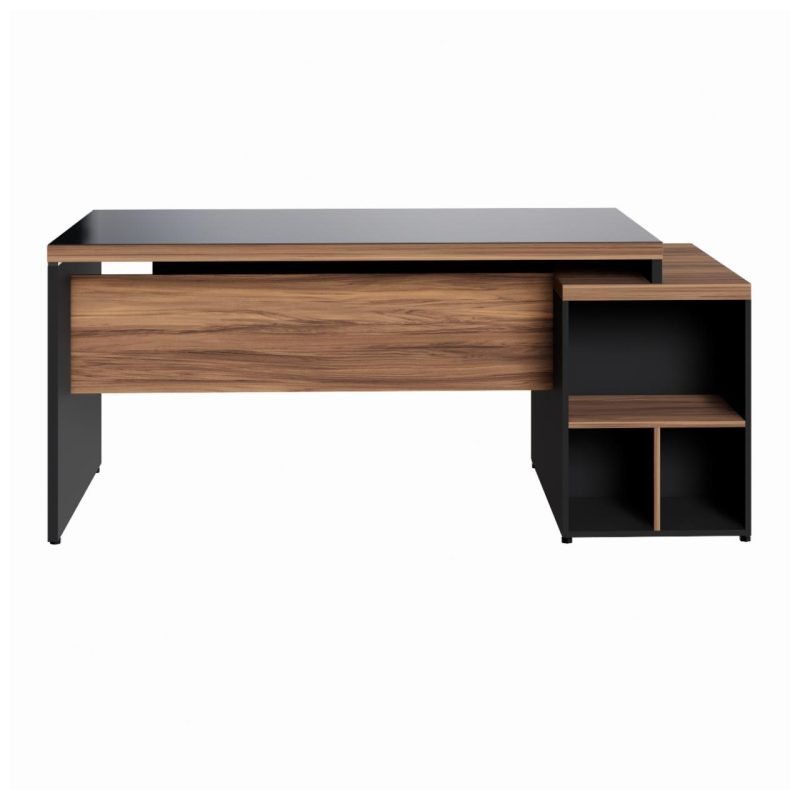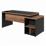 Mesa PEDESTAL RETA C/ VIDRO (03 Gav.) – 1,92X0,70m NOGAL SEVILHA/PRETO – 21399